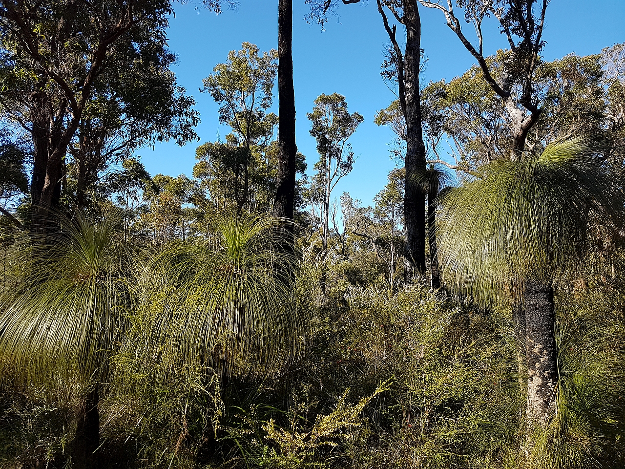 Grasstrees at Fernhook Falls. Note the tall one in the background; a plant of this size would be hundreds of years old.