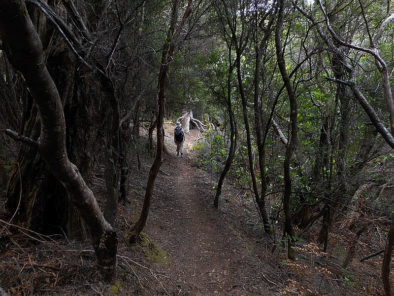 In the distance towards the east lies South East Cape, one of the five 'great capes' known to sailors circumnavigating the Southern Ocean. This cape is not accessible by foot, the vegetation being thick and scrubby, and the cliffs rocky and in places very steep.