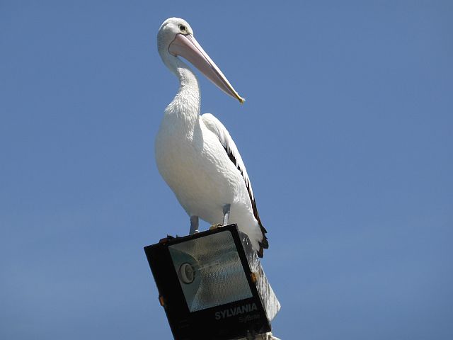 To back-track over the story of Ocean Child's travels, we left New Caledonia and arrived in Australia at Coffs Harbour (northern NSW) on November 27 2015: here Giulia left to return home (Italy) and Meg and I sailed south (one day) to her home town of Port Macquarie, accompanied by her young son George. Naturally they left once we arrived in PMQ. Grant Andrews, a sailor from Tasmania, volunteered to help me with the trip back to Hobart, and Grant and I sailed for two days, reaching Jervis Bay. We took shelter on the southern edge of the Bay, against the forest of the national park (at "Hole in the Wall"). Unfortunately Grant slipped on the deck and fell heavily, hurting his back. Nothing serious, but he decided he needed to rest, and left the boat. Kay McNamara (Brisbane) agreed to join Ocean Child at Eden. However Eden is around 29 hours sailing time south of Jervis Bay, at least for Ocean Child. I left Jervis Bay as soon as I could get favourable winds, sailing overnight alone for the first time. At Eden, Kay arrived by the midnight bus, and we left on December 14. The East Australian Current (EAC) was a great help as Ocean Child headed south, providing in many places more than one knot of speed boost. I sought it out by looking for either the 100m depth contour or the 200m contour. The 200m contour marks the edge of the continental shelf, and is clearly visible on the GoogleEarth image above. The EAC was easy to identify, as the boost in speed was obvious, as was the increase in ocean temperature from about 21 to around 25 degC. However, not far south of Gabo Island (marking the boundary between Victoria and New South Wales) we lost the EAC, and encountered an adverse current of around 0.5 knot, which we were not able to avoid until we reached the northeastern corner of Tasmania, even though we sailed east into the Tasman Sea over waters more than 1500m deep. Some years ago, accompanied by my good friend Miriam Ford, I had a great time snorkelling at Bowen Island, at the entrance of Jervis Bay. It was in fact one of the best snorkelling I've ever had, although not without its dangers. Bowen Island lies at the south side of the entrance to Jervis Bay, and there's a passage about 100m wide between the island and Governor Head, a rocky cliff not all that far above the sea. As you might expect, the tidal flow through this passage can be quite fast. All those years ago, I enjoyed this snorkel so much... I've always wanted to go back. It's necessary to be careful of the tidal current in the channel, and visibility is not great due to the breaking waves on the ocean entrance of the channel, but this place is full of movement, kelp beds swaying to and fro, shining yellow and orange in the sunlight.... and LOTS of fish... again a wonderful sight in the constantly moving water. There are heaps of deep purple sea urchins now... I don't remember if they were there years ago. I love seeing fish in schools, and there were schools of luderick and mullet. I was so cross with myself that I had forgotten my camera! The fish didn't seem too concerned about me, in fact the mullet circled me just to have a closer look. I assume this area must be protected from spearfishing (thank goodness!) although there seem to be a lot of anglers around. There were also lots of kelpies (mottled green herbivorous fish) and a few snapper, but only small. And when I finished my snorkel, I found an octopus in one of the tidal pools. Its body was about as big as a clenched fist, tentacles about 40cm long. I could see it watching me with its peculiar slitted eyes. Initially it seemed to be searching for crabs, probing small crevices with its agile arms. This was a rare sight. I've only seen octopus like this once before, in years of watching tidal pools. On the walk back to the boat, I encountered a young echidna. I kept very still and quiet, and it soon resumed its search for ants and termites, although stopping every now and then to peer upwards at me with its tiny eyes. The photo below: Pelicans just love street lights, which traffic engineers design strong enough to support these large birds. Here is a bird in a typical pose: