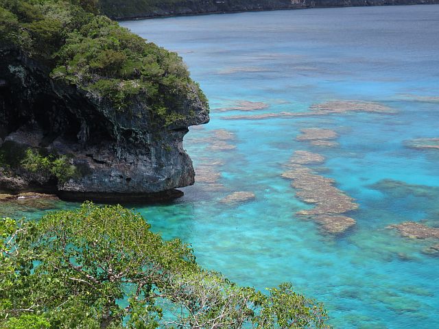 Typical scenery, Lifou... lots of shallow coral, and undercut limestone cliffs.