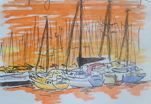Safe and sound tucked up in Coffs Harbour marina.... Meg's painting.