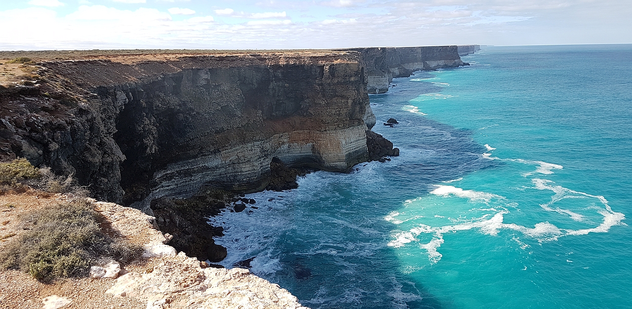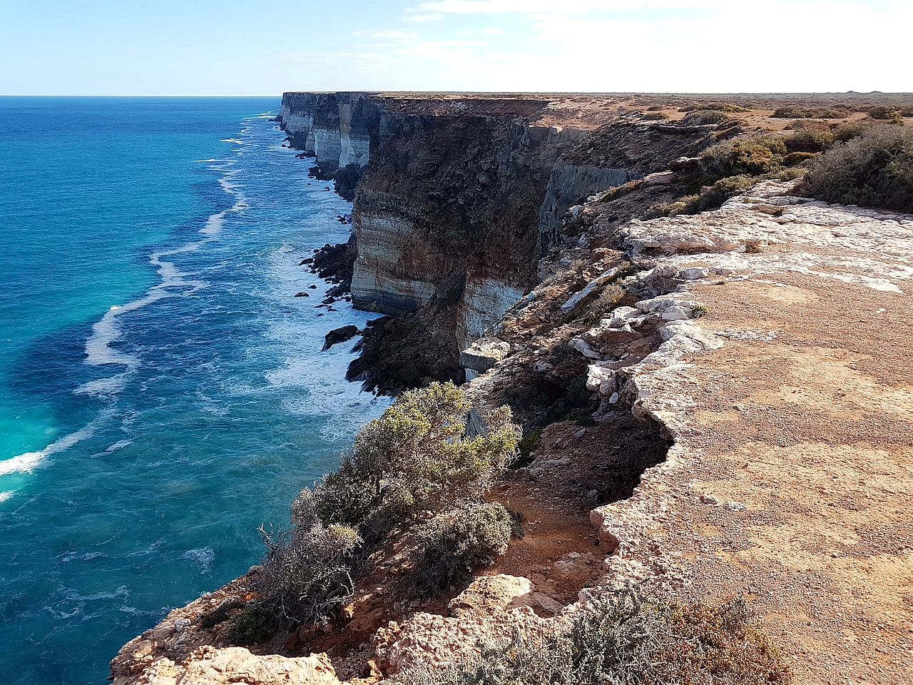 The Nullarbor Plain is the largest semi-arid deposit of karst (limestone) in the world, according to the South Australian (SA) National Parks and Wildlife Service (NPWS). The outline of the plain can be seen easily from space. It is crossed in an East-West direction by a single road, the Eyre Highway. I used this road during my road trip from Adelaide to Perth. Driving from the east, the town of Ceduna (in SA) marks the start of a journey through a largely deserted landscape (from a human's point of view), while the town of Norseman (in Western Australia - WA) marks the finish of that journey.
