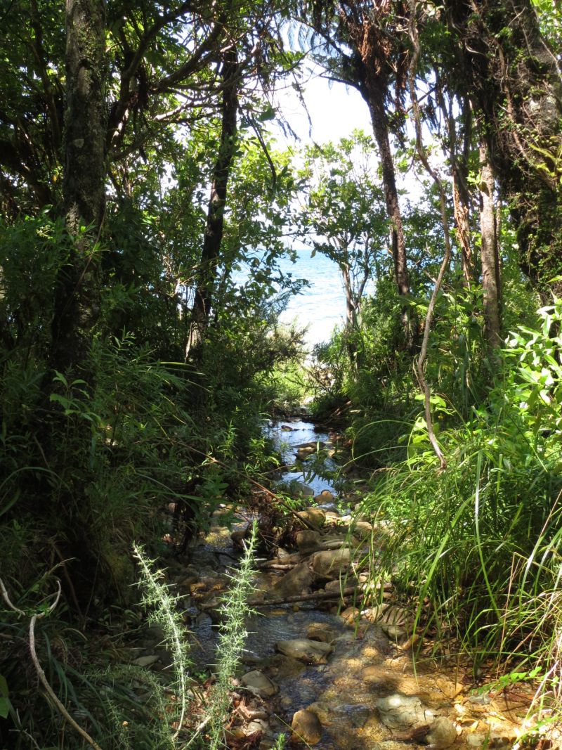 The next day we decided to have a look on the popular Queen Charlotte track. Although it was quite touristy, we enjoyed the beautiful landscape and the nice views from the coastal track. We even found a crystal clear freshwater creek (below), where we had a tasty lunch (which Jon, needless to say, had not prepared - he is hopeless with food!) and a swim.