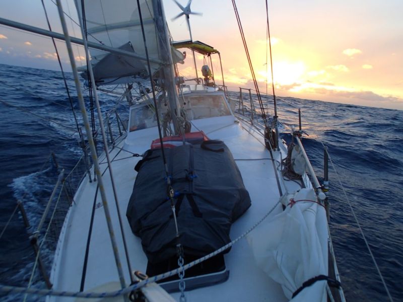 Notes on crossing the Tasman Sea Ocean Child One (Ocean Child for short) left Hobart for New Zealand on December 23, with two crew from the Find-a-crew website, and weather advice from Bob McDavitt in NZ. For some days we had light to very light northwest winds. Of the approximately 1200 nm to Nelson we motored 300 nm on our noisy old Yanmar 30hp engine. We reached Nelson 13 days later. On the second last day we were advised to expect 40-50 knot northerly winds and decided to sit out one night on our drogue - home made and modelled on the well-known Gale Rider drogue. The drogue (deployed from the stern) proved to be too small and the boat (with bare masts) lay beam on to the wind - most unsatisfactory as I had expected it would run with the wind. I considered setting the storm jib to bring the boat in line with the wind, but decided not to as the winds seemed lighter than predicted, and with the jib the boat would have made considerable progress in the wrong direction, towing the rather weak drogue. At this stage we were well away from land and shipping lanes. I am investigating selling or modifying my drogue, or buying a new drogue. Any comments from readers would be appreciated. Damage to the boat during the trip was limited to a broken furler and a broken depth sounder. The furler (Hood 915) - the circlip holding the bearing races in place broke and released the balls - consequently the furler jammed and we were left with only the storm jib as a headsail. The boat is a center cockpit design, and I was not expecting wave entry into the cockpit. However a large wave did get in (and actually into the boat as the washboards were not in place at the time). This wave also entered the nominally waterproof Navman depth sounder, and it has not worked since. I have been VERY impressed with the services and other facilities in Nelson. I was so used to getting great service in Hobart (supplies, tradesmen etc) that I was prepared for a lower and slower level of service in Nelson, especially as I do not know my way around. However I cannot speak too highly about services and facilities in Nelson - they are really great. Right now (January 2014) Ocean Child is stuck in the marina however, waiting on parts from America to undertake repairs, before I can leave for the Bay of Islands. I would make a final comment about getting 'unknown' crew from a website - I think there is a large amount of luck involved here, but luck was running my way. Both crew were outstanding - to the extent that I don't imagine I will ever get crew to surpass James - an outdoor sports enthusiast on holiday in Australia.