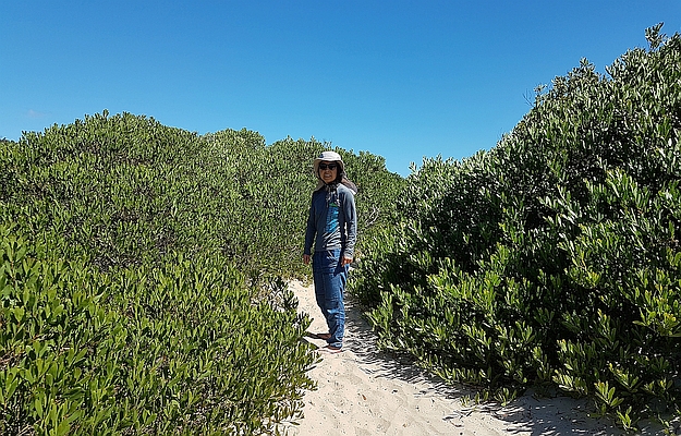 The sand is clean and white. There's almost no litter on the beach or in the carpark.