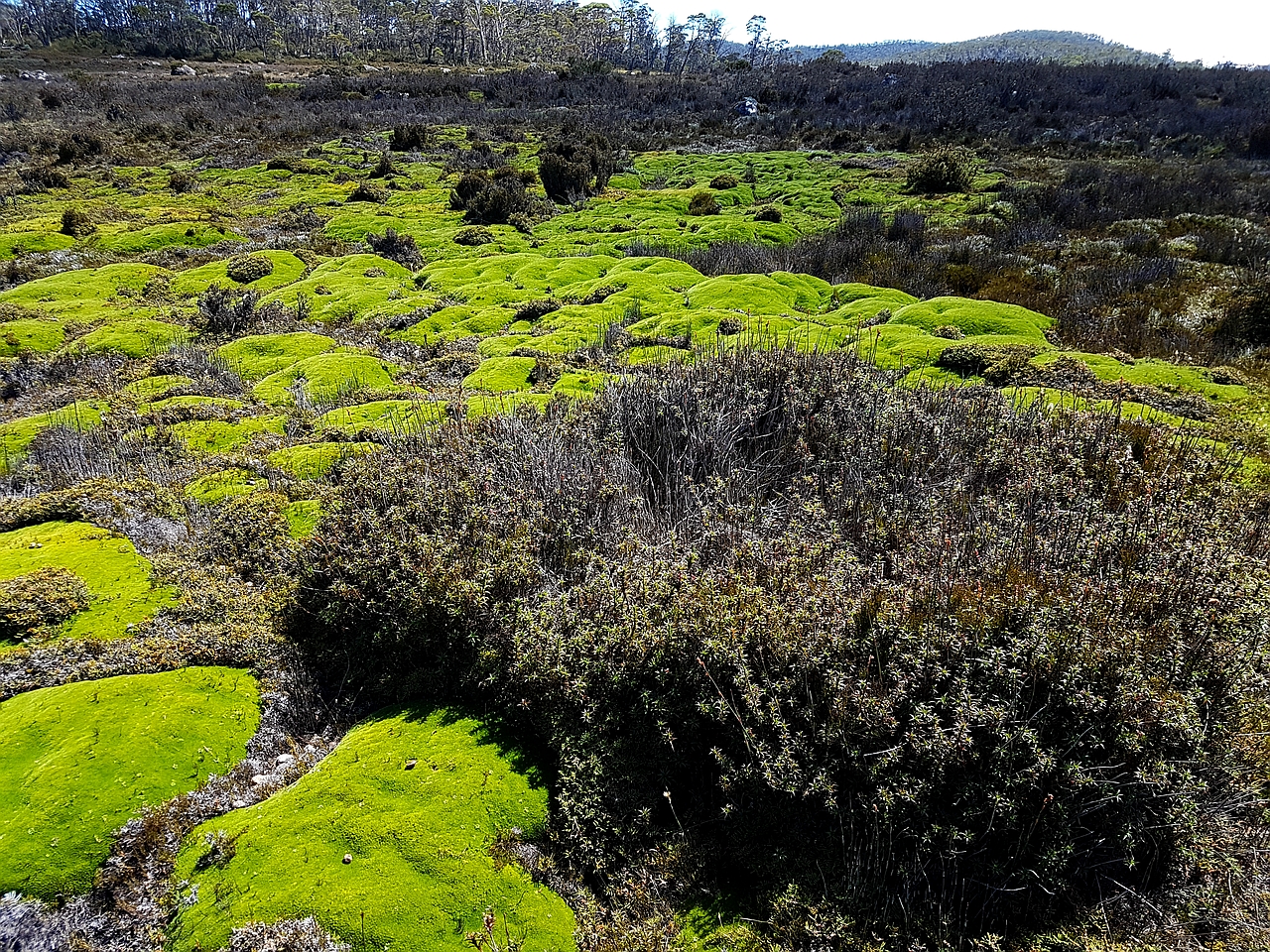 Cushion plants are fascinating. In this image I can imagine that I have taken a journey to another solar system, and landed on a strange planet. The green is a wide field, and a dense forest rises abruptly... no doubt full of strange creatures....