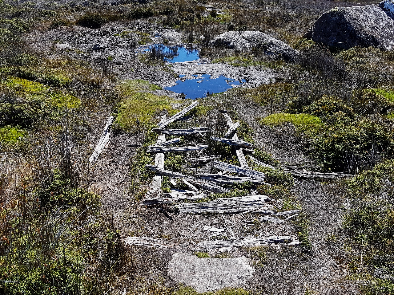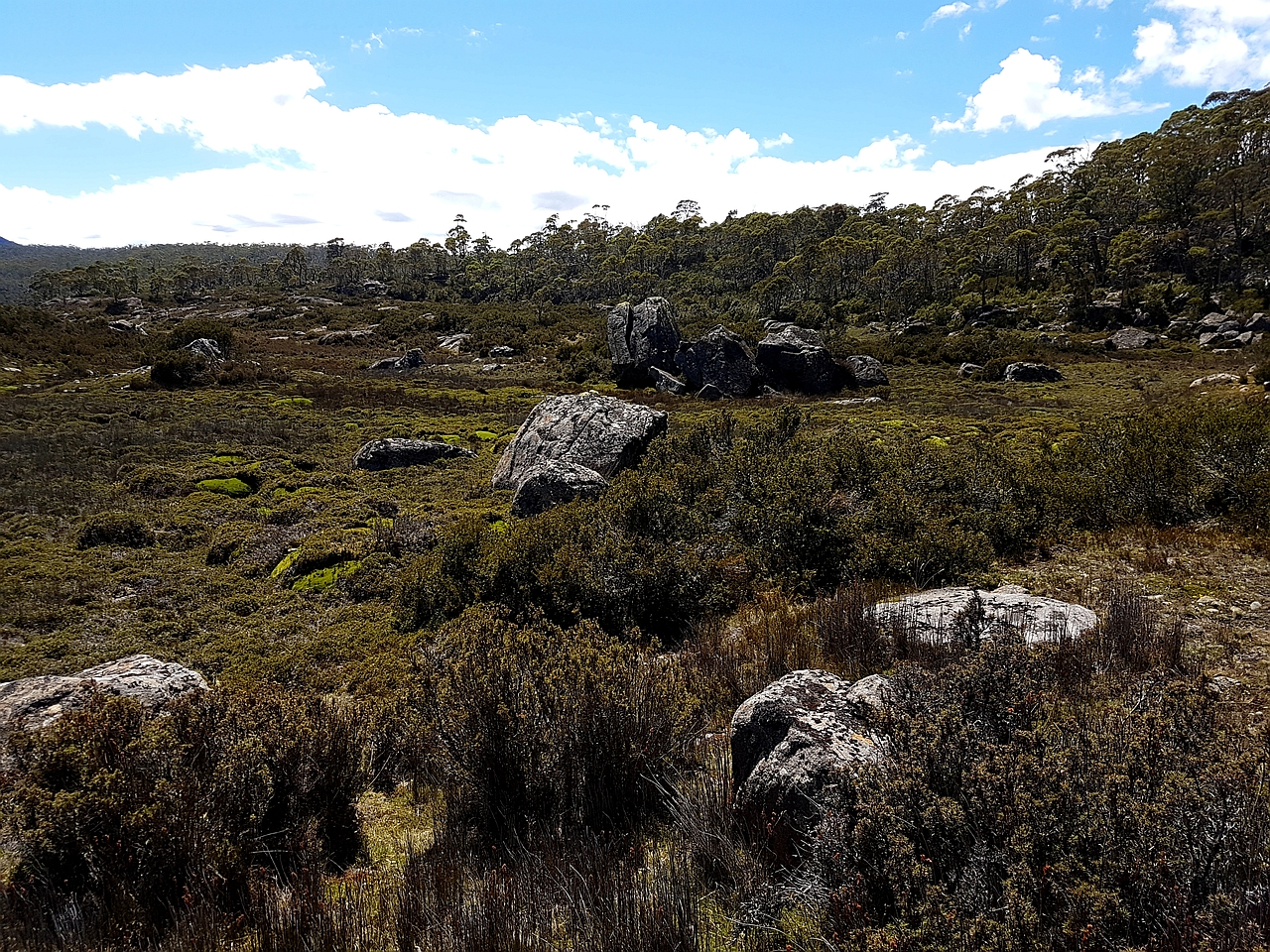 Generally speaking, the condition of the tracks in the Walls of Jerusalem area varies between poor and terrible. In some places, particularly walking west from Dixon's Kingdom, the track is, in many places, impossible to follow. Here the fact that the track runs near the shore of Lake Ball is the only thing that saved us from getting lost.