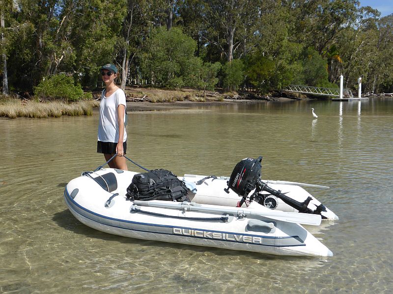 We took our dinghy (Ocean Baby) to Carlo Point, just east of Tin Can Bay. Our timing wasn't so great... on the trip the wind was against us, so, with three people on board (the maximum legal limit) the trip was wet and bouncy. We were soaked by the time we got there. Luckily the day was warm and sunny. The trip took 75 minutes, but we all agreed it felt like three hours.